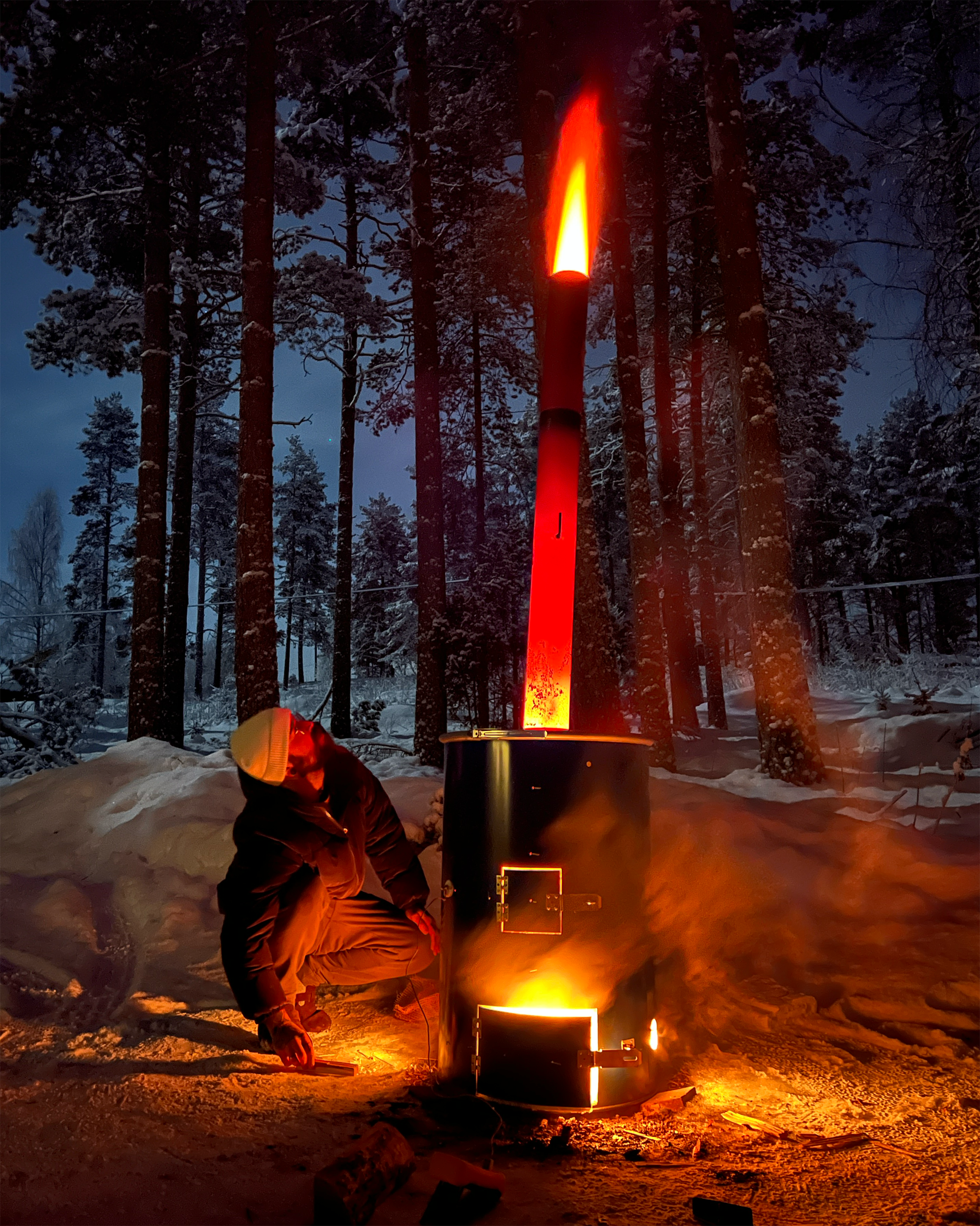 ein upgrade, eine auf dem grundstueck gefundene stahltonne leider ohne dicht schliessenden deckel, doch wieder dasselbe spiel, gebackene aber nicht gebrannte fliesen fehlende isolierung zu viel hitzeverlust. unser verstaendnis und unsere motivation wuchs durch recherche wuchs das wissen mit dem wissen kamen ideen. wir wollten es schaffen, aufgeben war keine option